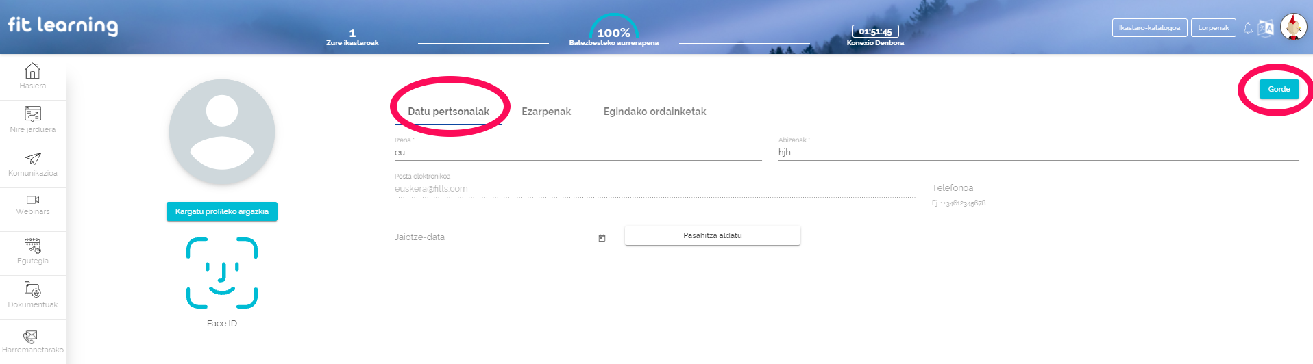 Plataforman gure datu pertsonalak zuzentzeko urratsak: