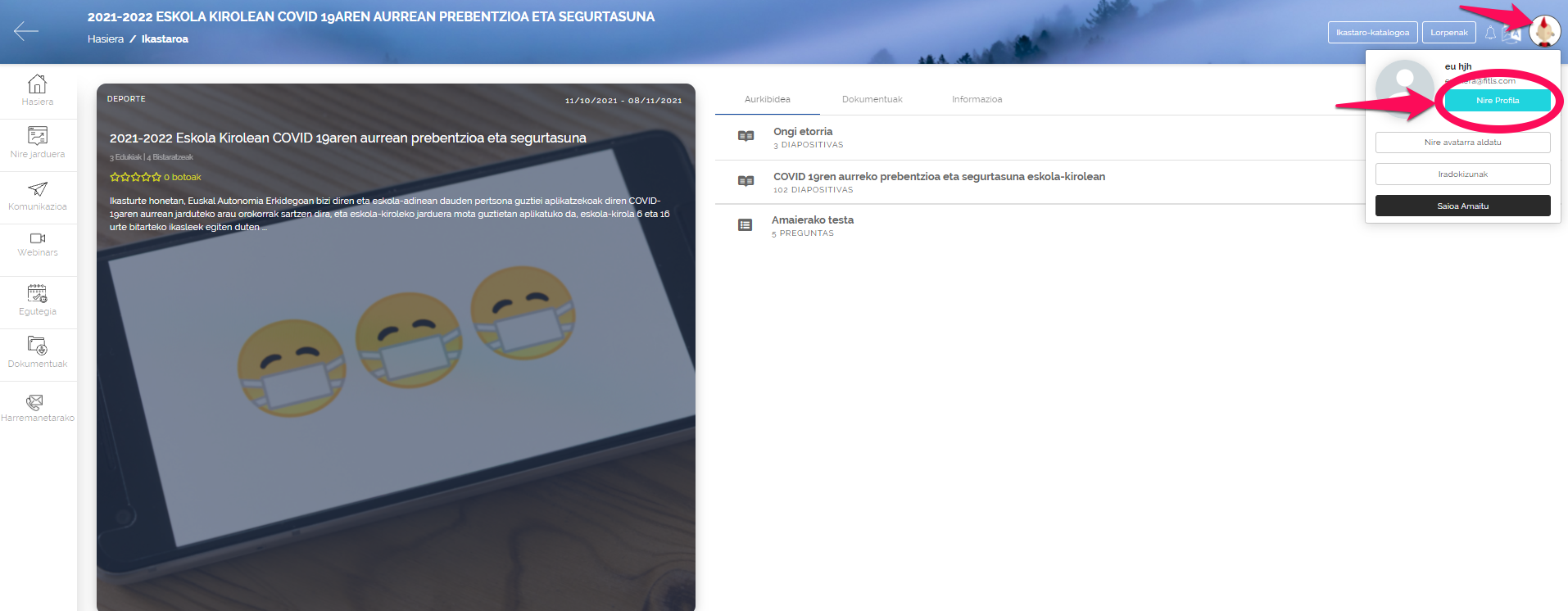 - Agertzen den goitibeherakoan NIRE PROFILA klikatuko dugu (1. irudiak erakusten duen bezala)