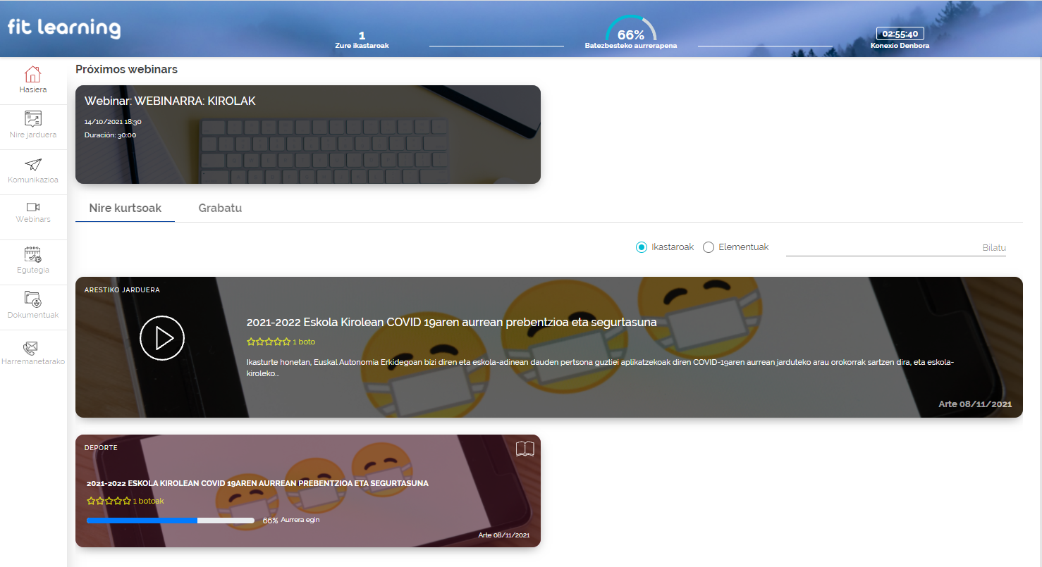 2 urrats horiek bete ondoren, zure ikastarora eroso sar zaitezke, ikastaroaren gainean klik eginez.
